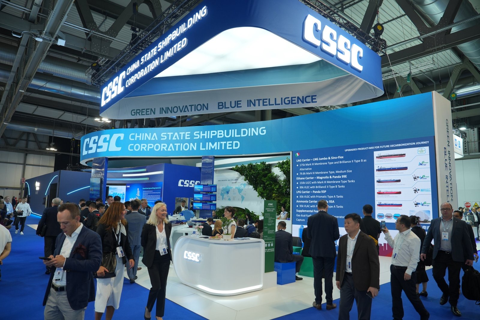 此次展會,中船集團緊密圍繞“清潔能源、綠色發展”參展主題,科學高效利用展臺展示空間,設置集團總體區、海上LNG產業鏈裝備區、綠色能源開發儲運裝備區、零碳低碳技術區、全球營銷服務網絡區,系列化、場景化展示中船集團高水平海上LNG產業鏈以及綠色清潔能源領域創新技術產品和標志性成果,包括“夢想”號大洋鉆探船、27.1萬立方米超大型液化天然氣運輸船、9.9萬立方米超大型乙烷乙烯運輸船、7500立方米液態二氧化碳運輸船、集裝箱式電解水制氫設備等,充分彰顯中船集團產業鏈綜合競爭優勢和綠色低碳創新能力,高效助力重點客戶關系鞏固及海外市場開發,突出體現推動綠色轉型發展的企業社會責任擔當。