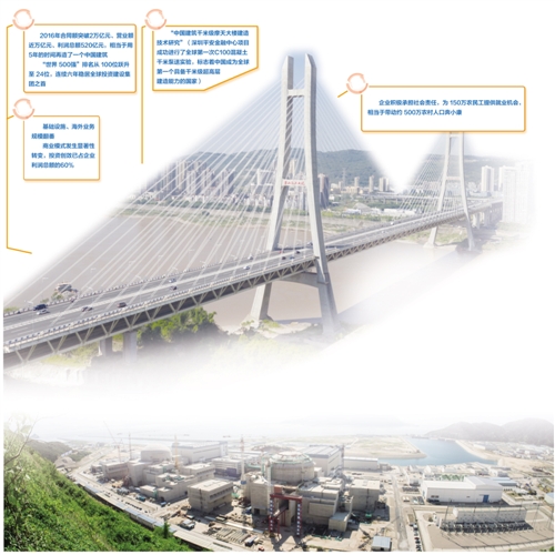 黨的十八大以來的5年,中國建筑連續(xù)5次獲得國務(wù)院國資委中央企業(yè)負責人經(jīng)營業(yè)績考核A級,任期考核蟬聯(lián)“業(yè)績優(yōu)秀企業(yè)”榮譽稱號;5年來,中國建筑在財富“世界500強”排名從100位躍升至24位;5年來,中國建筑連續(xù)穩(wěn)居全球投資建設(shè)集團之首,獲得標普、穆迪、惠譽等國際三大評級機構(gòu)信用評級A級,為全球建筑行業(yè)最高信用評級。自1982年組建以來,中國建筑實現(xiàn)“每10年多環(huán)比增長10倍”的快速發(fā)展目標。2016年,中國建筑合同額突破2萬億、營業(yè)額近萬億、利潤總額520億,營業(yè)收入、利潤總額分別位居國務(wù)院國資委管理的中央企業(yè)第4位、第5位,相當于用5年的時間再造了一個中國建筑。