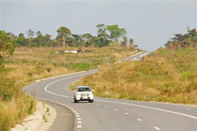 驅(qū)車駛出布拉柴維爾,剛果盆地遼闊的草原便映入眼簾。汽車很快駛上寬闊平坦的雙向四車道公路,這便是剛果(布)國家一號(hào)公路。