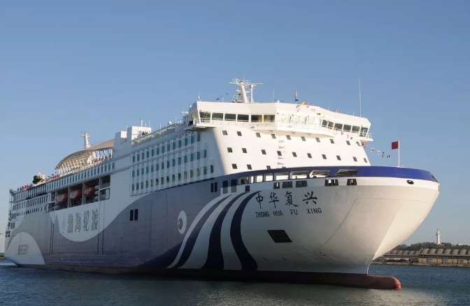 ????“中華復興”號總長212米,型寬28.6米,總噸4.4萬,裝載車道長度3070米,3層車輛艙,服務航速18.8節,最大續航力5000海里。 擁有雙套船舶動力系統、雙電源系統、雙套滅火系統,有良好的設計穩性和船體強度,滿足減振降噪、節能環保等最新國際規范要求。 載客定額為1689人,客房全部采用等級艙位,設有大型多功能演藝廳、兒童游樂區、購物中心、影院等娛樂休閑場所,集旅行、休閑、娛樂于一體,為旅客帶來郵輪般體驗。