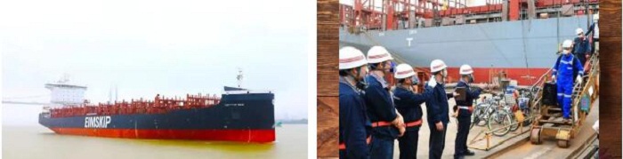 ?? H5647船是2150TEU(標準集裝箱)系列船的第三艘,總長179.4米,型寬30.95米,型深17.4米,滿載2150箱,設計吃水9米;配置了廢氣再循環(EGR)系統和脫硫系統,可降低硫氮化合物的排放,滿足國際海事組織(IMO)Tier III 排放要求,是一艘綠色、環保的船舶。