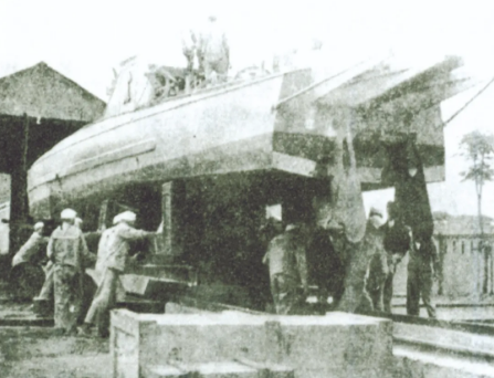 △我國第一艘自行設計建造的淺水炮艇“海東雄”號(蚊子船)