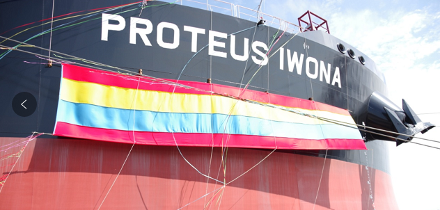 “普羅透斯?伊沃娜”號(hào)(PROTEUS IWONA)是外高橋造船為交銀租賃建造的第2艘10.9萬(wàn)載重噸阿芙拉型雙燃料成品油船。首制船“PROTEUS JESSICA”號(hào)于8月交付。