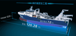 ????“深藍(lán)號(hào)”由黃埔文沖建造,七〇八所參與設(shè)計(jì),總長約120米,型寬21.6米,設(shè)計(jì)吃水7.3米,設(shè)計(jì)航速15節(jié),主機(jī)功率8000 千瓦,載重噸約5000噸。“深藍(lán)號(hào)”是我國自主研制建造的第一艘漁業(yè)捕撈加工一體船,也是目前最大最先進(jìn)的漁業(yè)捕撈加工一體船,取得近200項(xiàng)知識(shí)產(chǎn)權(quán)保護(hù),實(shí)現(xiàn)了我國現(xiàn)代化漁業(yè)船舶裝備領(lǐng)域的重大突破,達(dá)到世界先進(jìn)水平;主要用于南大洋漁業(yè)捕撈,兼顧海洋科考功能,可滿足ICE-A冰區(qū)(冰厚度0.8米)及-25℃低溫環(huán)境的營運(yùn)要求。