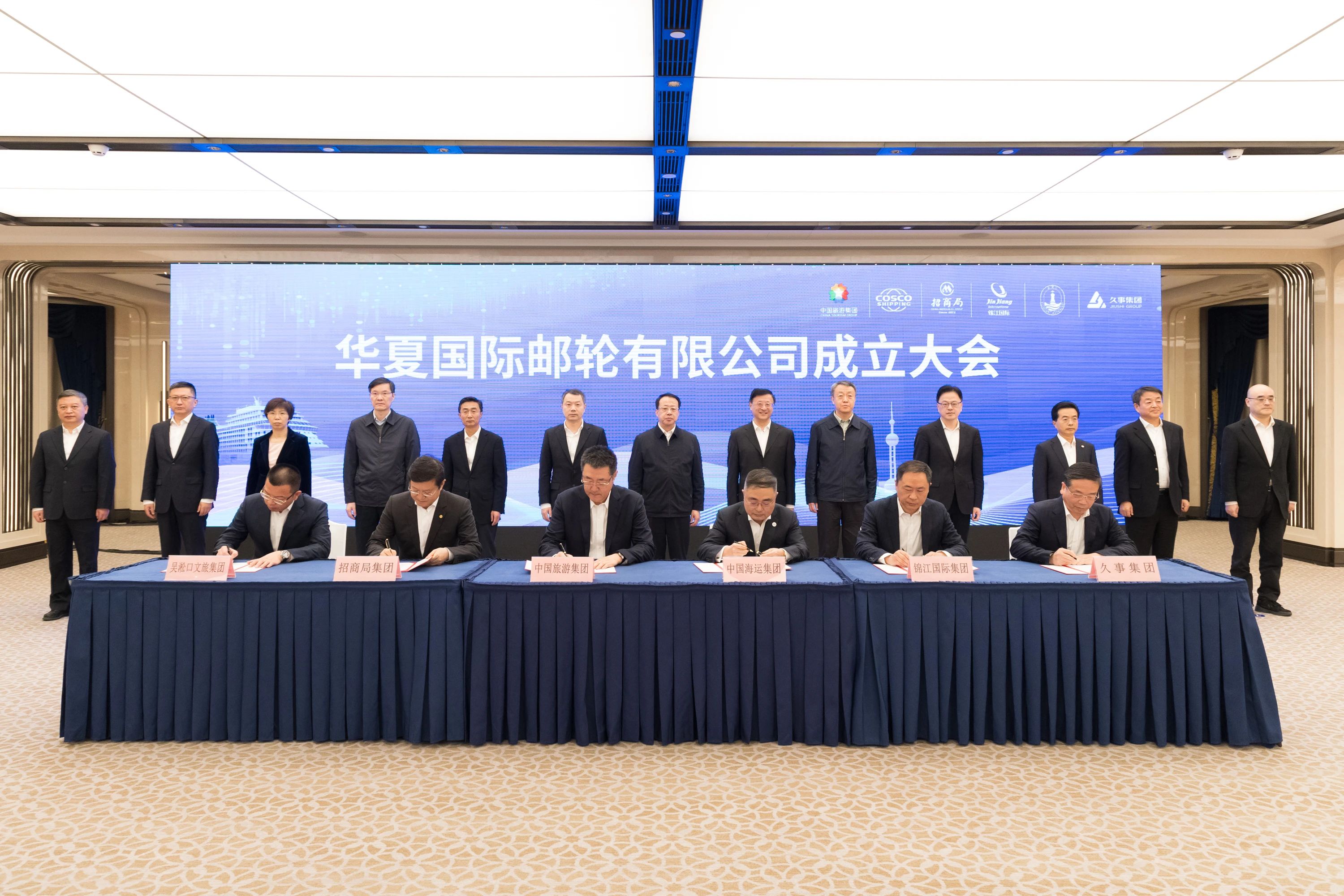 成立大會上,龔正、陳寅為華夏國際郵輪有限公司揭牌。中國旅游集團、中國遠洋海運集團、招商局集團、錦江國際集團、上海久事集團、吳淞口文旅投資集團相關負責同志簽約。