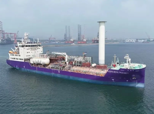 近日,中國船舶集團旗下大連造船為挪威北極光公司建造的全球首制7500立方米液態二氧化碳運輸船1號船完成柴油試航任務。